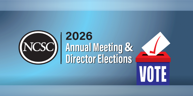 NCSC will hold its 45th Annual Membership Meeting on June 15 in Chula Vista, California, in conjunction with CFC Forum 2026. Telecom voting members will elect a Class T director in District 2. Candidate solicitation letters were mailed to District 2 members in early February, with nominations due March 10.