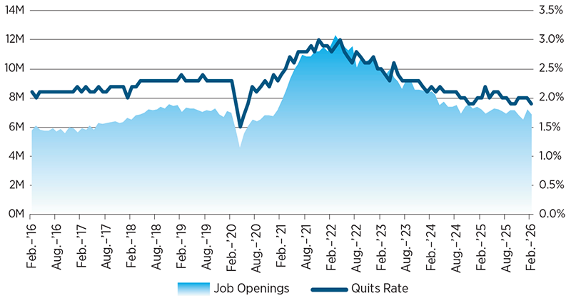 Overall, the latest data suggest employers are becoming more cautious following a prolonged period of economic uncertainty. Although many experts link oil prices driven by the current geopolitical conflict to the weak job openings report, this is an inaccurate assessment as the data reflect the labor market in February, before the war in Iran started. The impact of the war on the U.S. labor market, if any, has not yet appeared in the latest data.